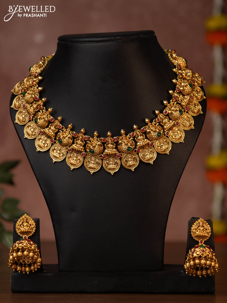 Antique necklace lakshmi kasu & peacock design with kemp and cz stones