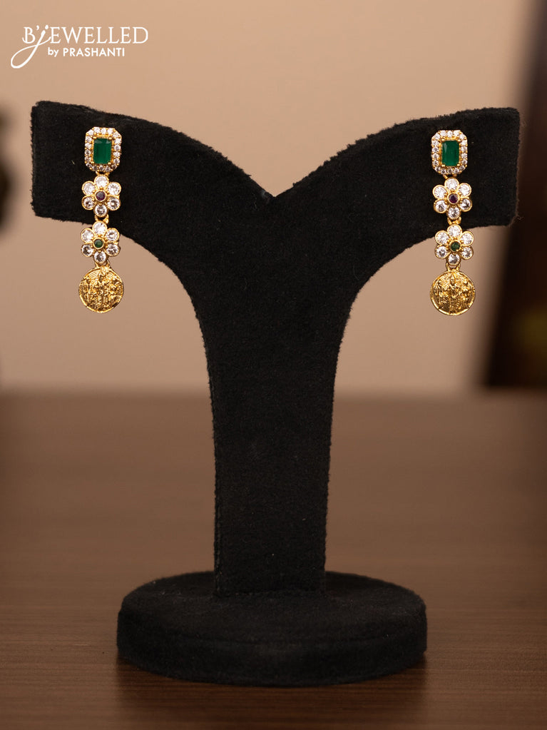 Antique necklace lakshmi pendant with pink kemp stones and pearl hangings