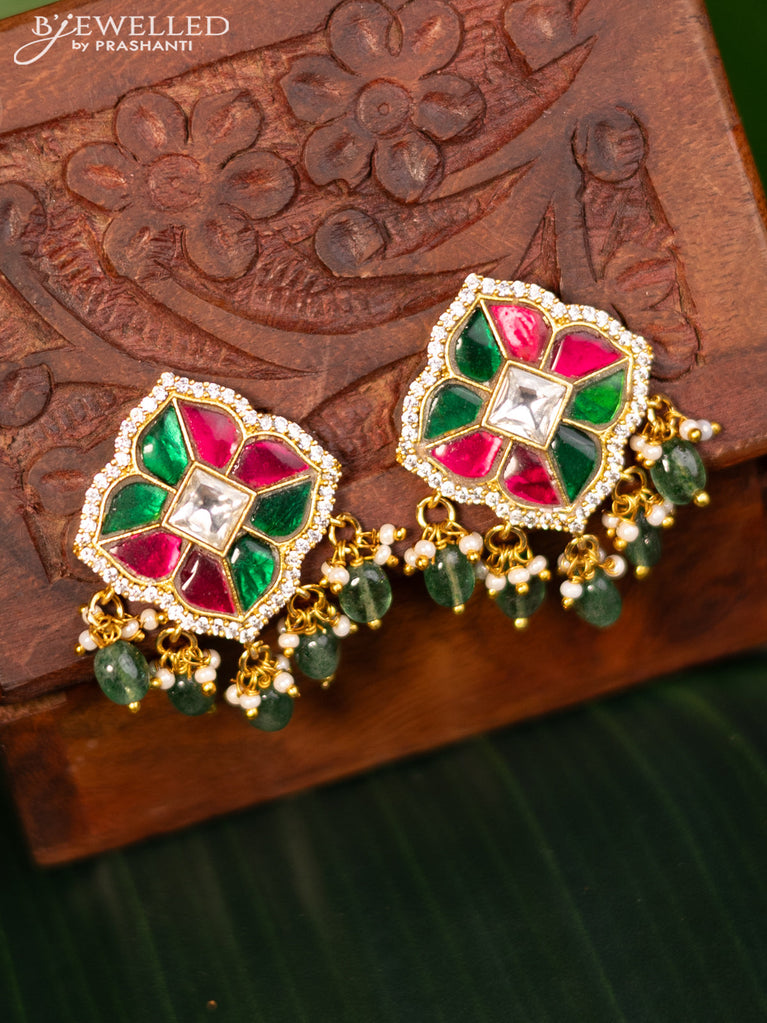 Antique screw type earrings with jadau kundan stones and natural beads hanging