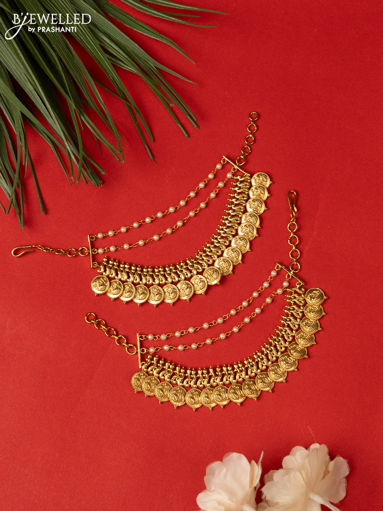 Antique self embosse hip belt lakshmi design with kemp & cz stones and pearl hangings