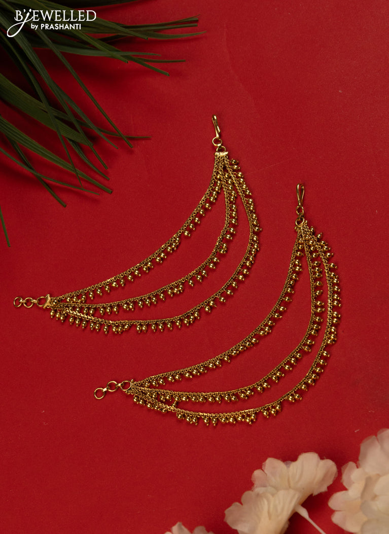 Antique triple layer haaram lakshmi design with jadau stones and golden beads hanging