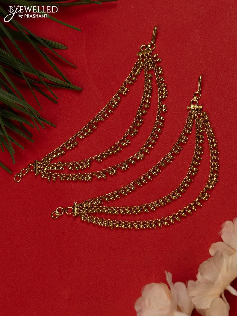 Antique triple layer mattal maanga pattern with kemp and cz stones and pearl hangings