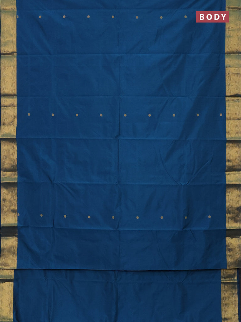 Arani semi silk saree peacock blue with zari woven rudhraksha buttas and zari woven border