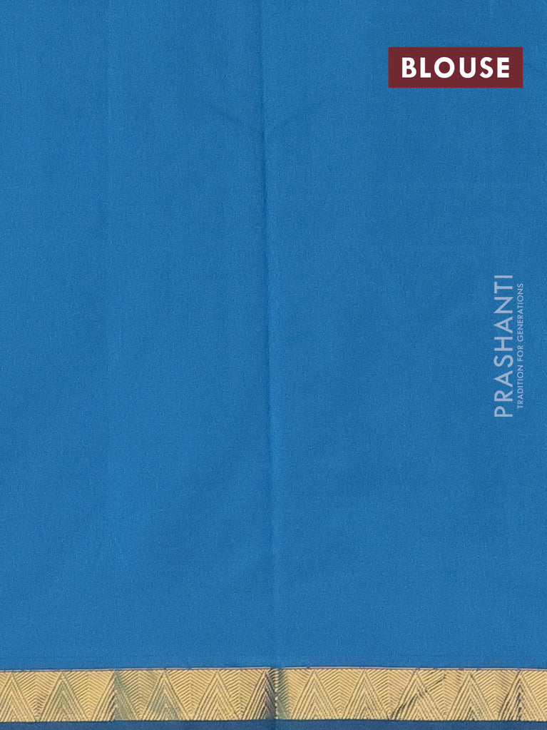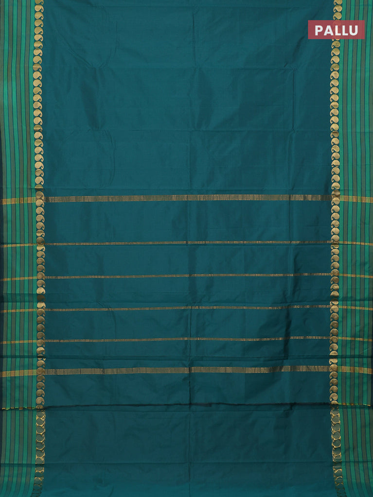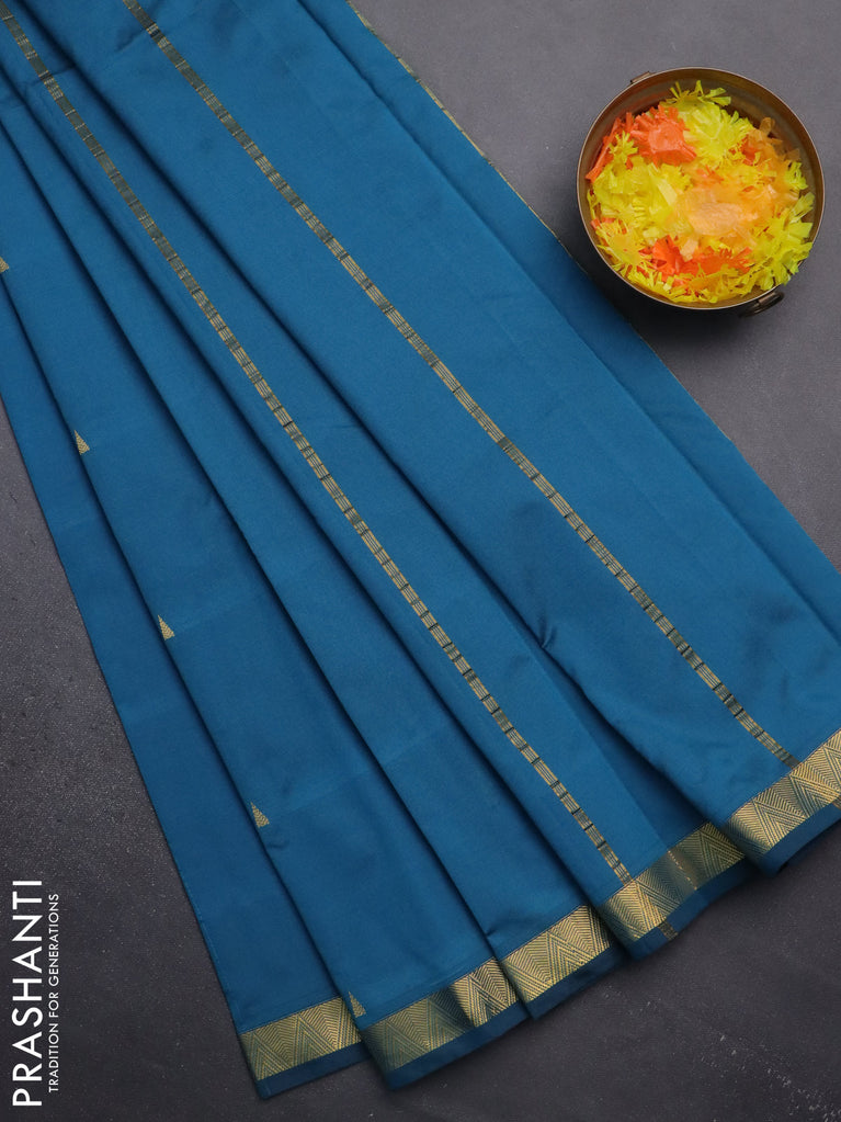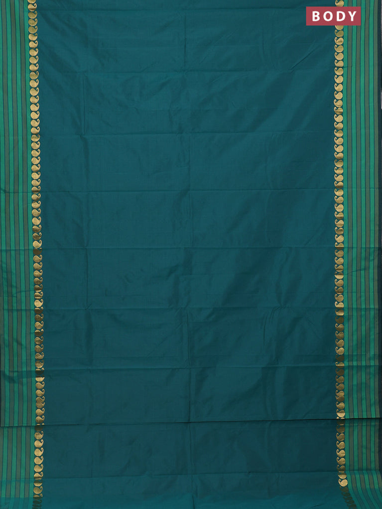 Arani semi silk saree peacock blue with plain body and zari woven border