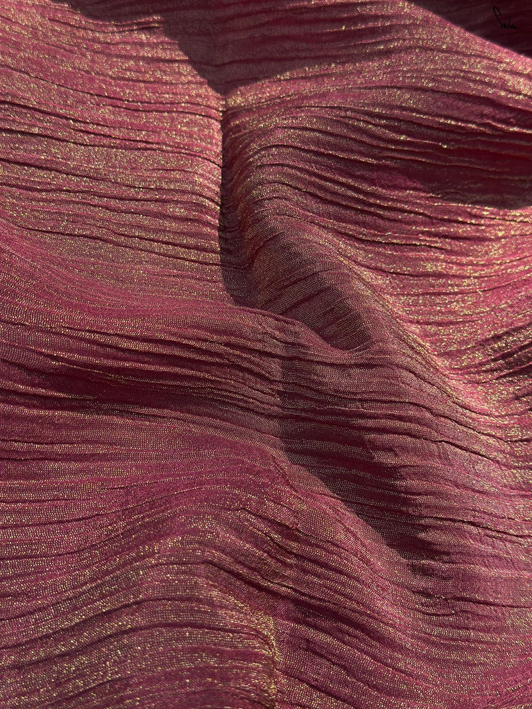 Aurum, a golden masterpiece, is made from opulent chanderi cotton silk. This saree is complemented by a matching lining that eliminates the need for an underskirt, while adjustable loops and a chic pocket provide comfort and ease. Ready to shine in under 30 seconds, Aurum is perfect for any occasion.