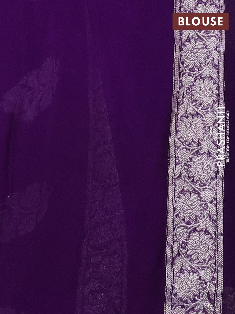 Banarasi chiffon silk saree violet with silver zari woven buttas and silver zari woven border