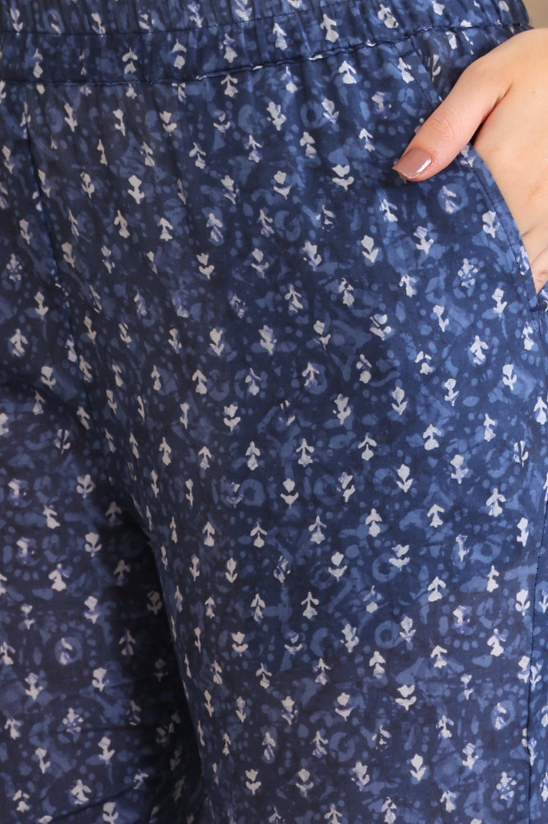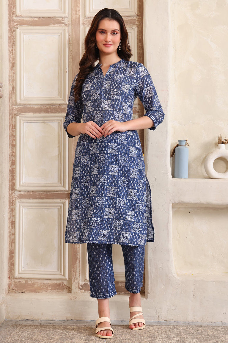 Blue Printed Straight Pure Cotton Kurta and Trouser Co-ord Set