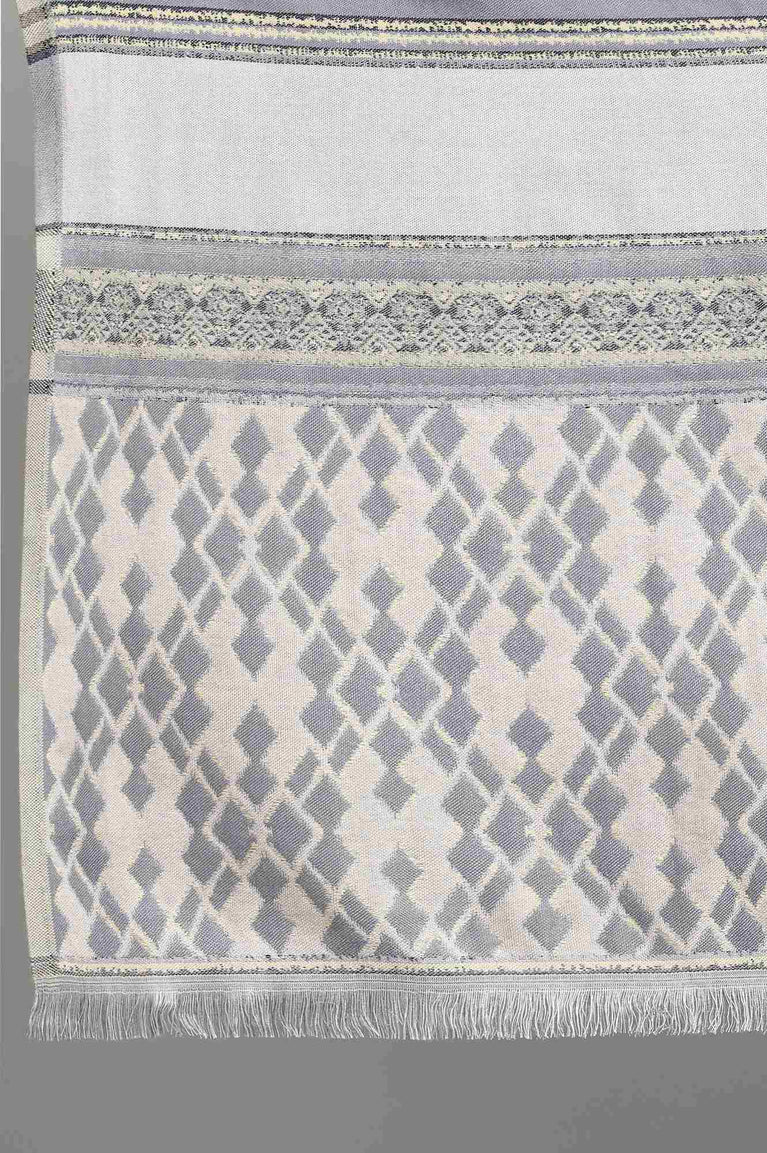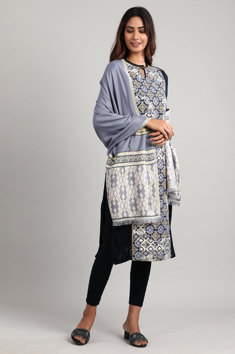 Introducing the exquisite fusion shawl from W, a perfect blend of style and comfort for the modern woman. This dull blue shawl is crafted from a luxurious combination of 40% wool, 30% zari, and 30% modal, offering warmth and elegance in equal measure. The design ensures a sleek and sophisticated look, making it versatile enough for various occasions. Ideal for casual outings, this shawl adds a touch of refinement to any ensemble. The fusion of traditional and contemporary elements makes it a must-have accessory for fashion-forward women. The inclusion of zari adds a subtle shimmer, elevating the overall appeal of this beautiful shawl. Its wool content provides excellent insulation, making it perfect for cooler days, while the modal component ensures a soft and comfortable feel against the skin. This shawl is not just an accessory; it's a statement piece that effortlessly combines functionality with style. Whether draped over the shoulders or wrapped around the neck, this W shawl is sure to turn heads and keep you cozy in style.