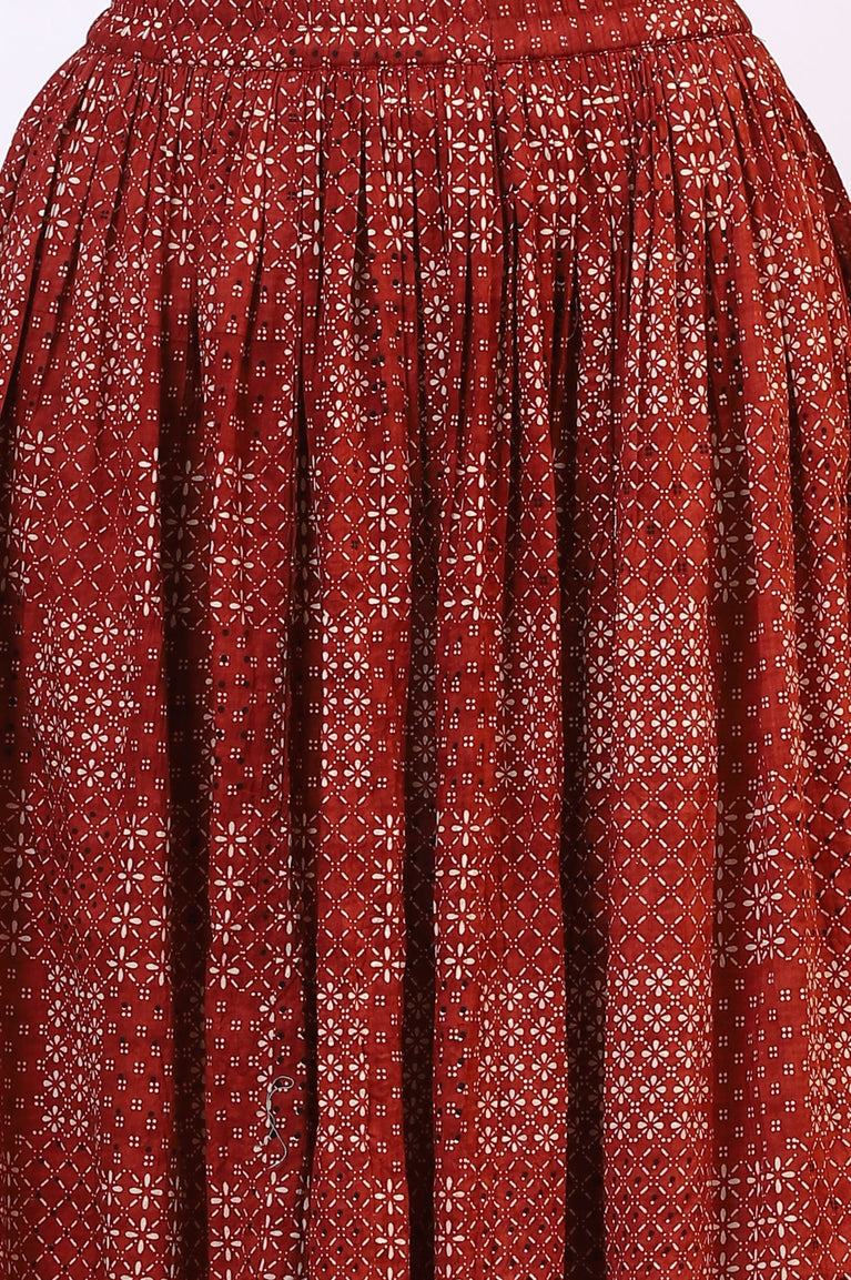 Brown Geometric Printed Pure Cotton Top, Skirt and Scarf Set