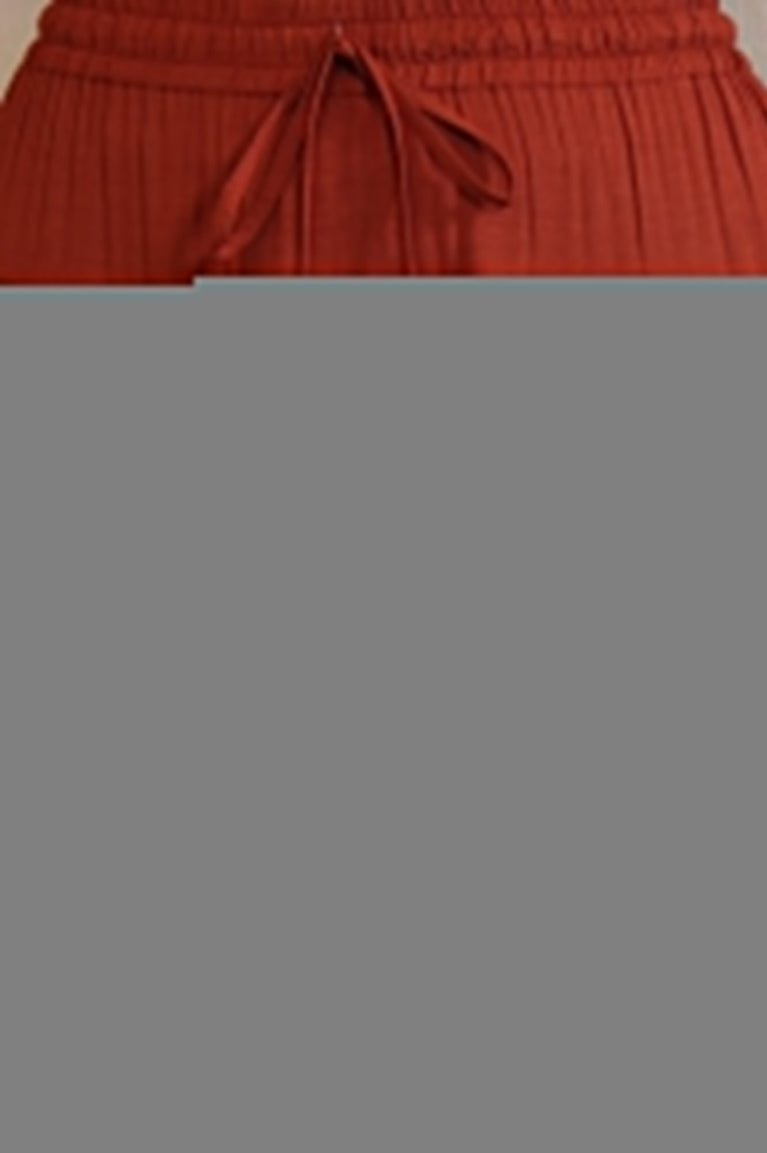 Upgrade Your Wardrobe By Adding This Elegant And Chic Ethnic Set. The Set Includes Brown kurta In Straight Silhouette. It Has Floral Motifs And Comes In Round Neck With Keyhole. It Is Coordinated With Red Straight Palazzo Pants In High-Rise And Elasticated Waistband.