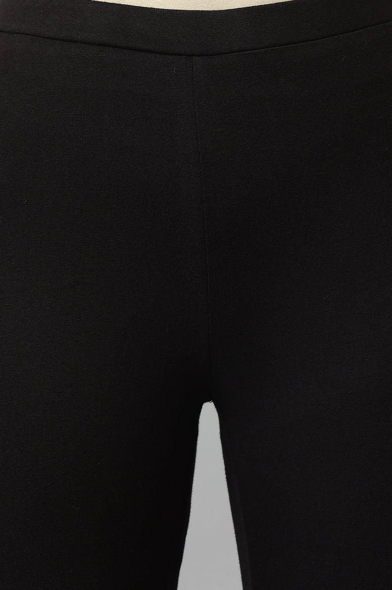 Black Ankle Length Tights In Mid-Rise And Elasticated Waistband.