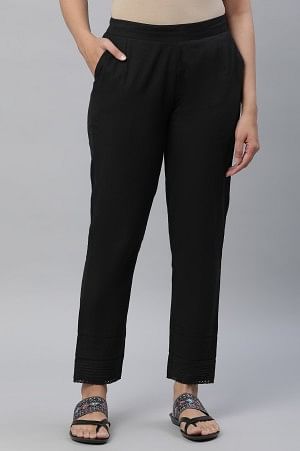 Black Cotton Solid Trousers