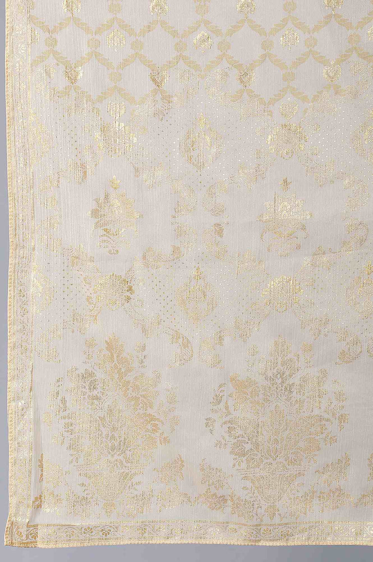 Black coloured straight solid kurta featuring zari embroidery, sequin embellishment, mandarin collar with buttoned placket and three-quarter sleeves. To complement, the set contains contrasting beige coloured floral print flared skirt that has an elasticated waistband and chiffon dupatta.