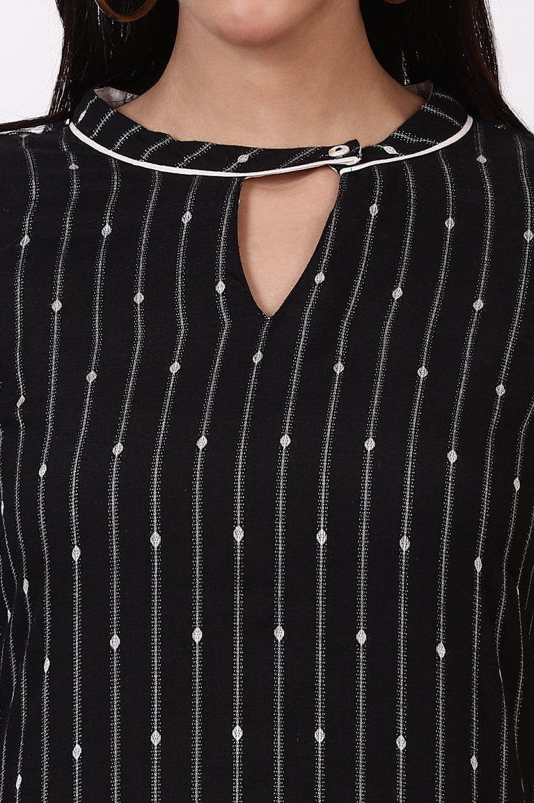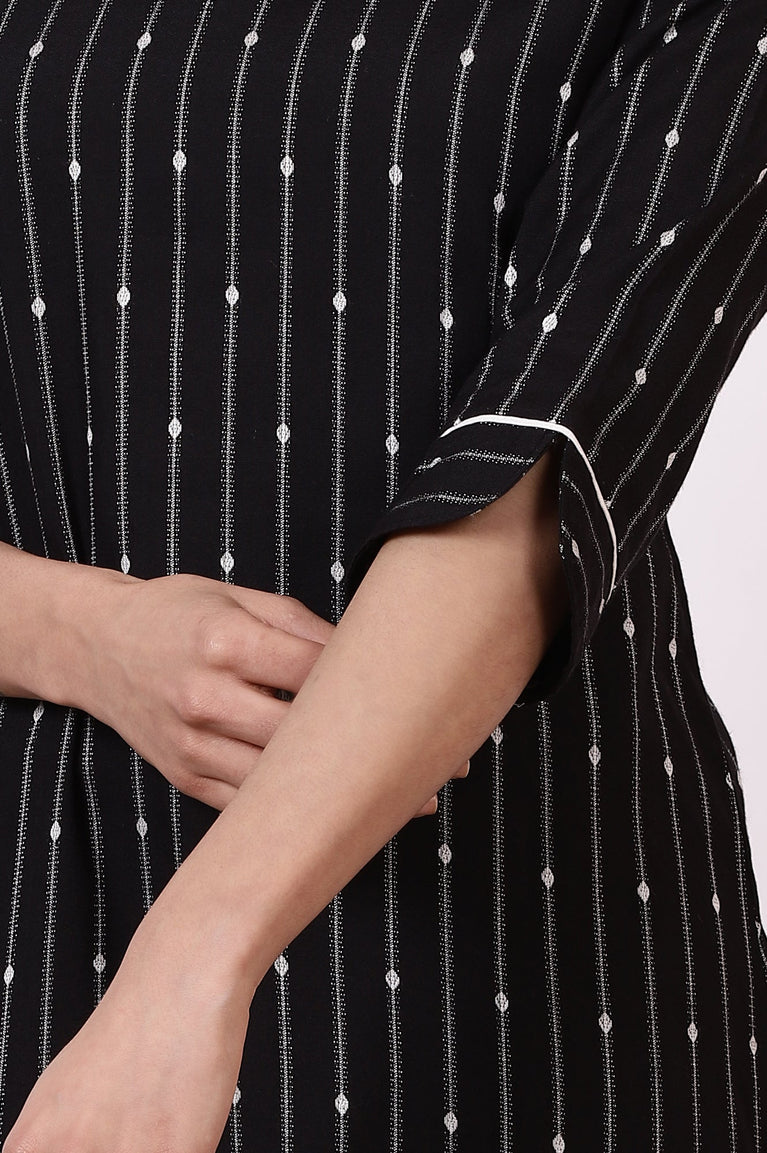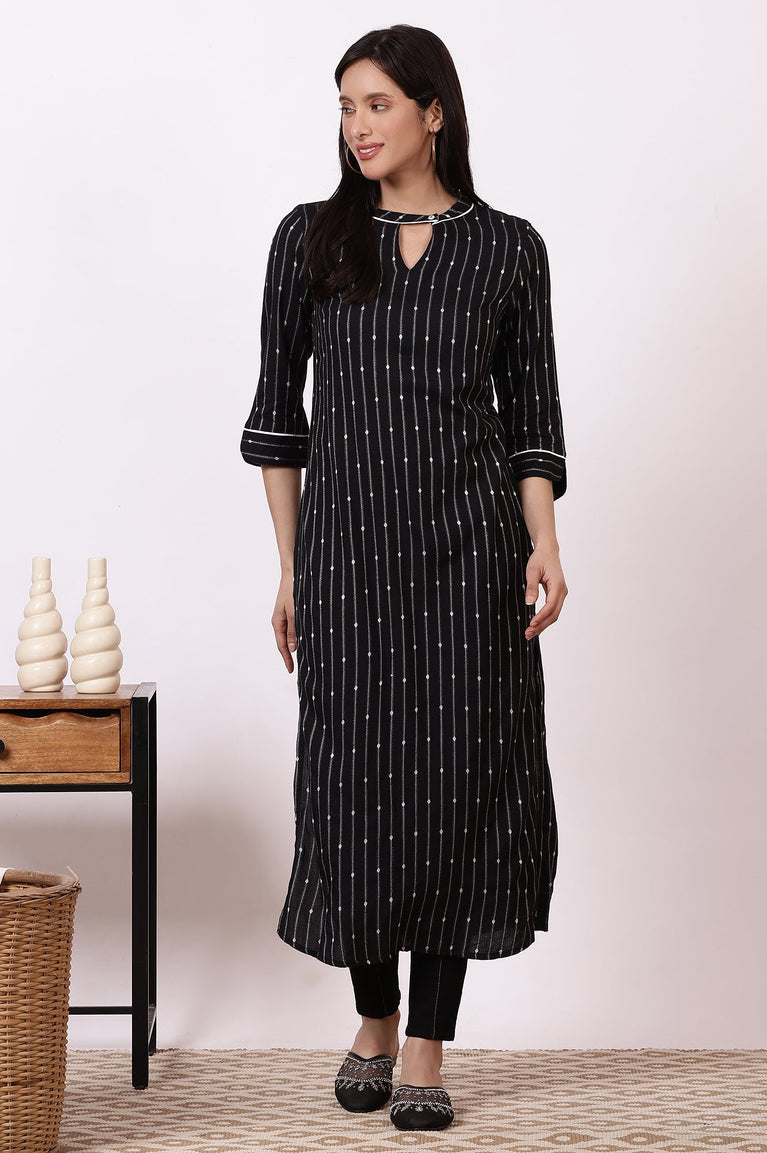 Black Striped Yarn-Dyed Straight Kurta and Denim Jegging Set