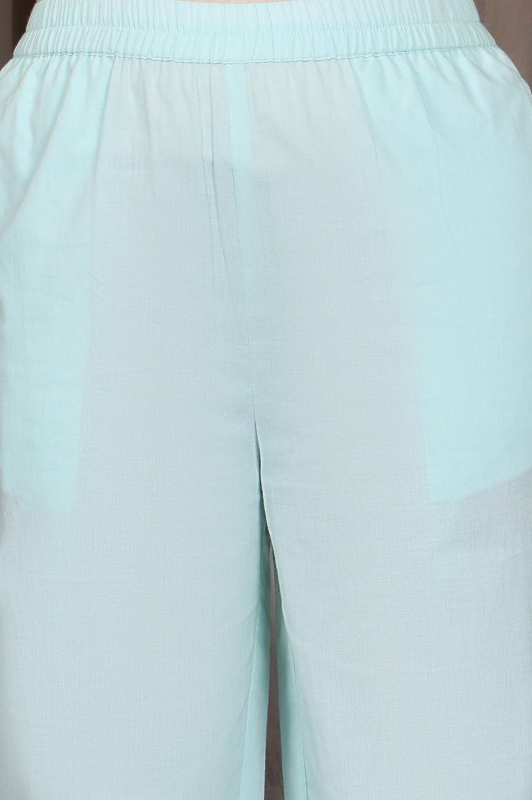 Discover the allure of this sky light blue kurta and palazzo set, meticulously crafted from pure cotton for a relaxed fit. The kurta features a stunning foil print and delicate tape ornamentation, creating a harmonious blend of tradition and modernity. The band collar and 3/4th regular sleeves add a touch of sophistication, making it perfect for both casual and formal occasions. The solid palazzo offers comfort and versatility, completing the ensemble. Pair this set with statement earrings and elegant footwear for a chic ethnic look. Embrace sustainable fashion with this eco-friendly outfit, designed for the modern Indian woman who values quality and style.