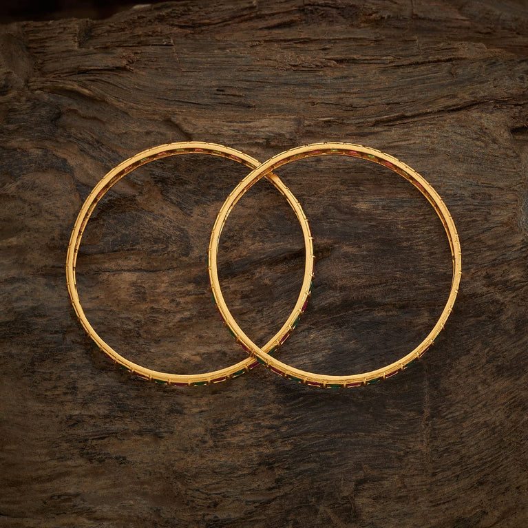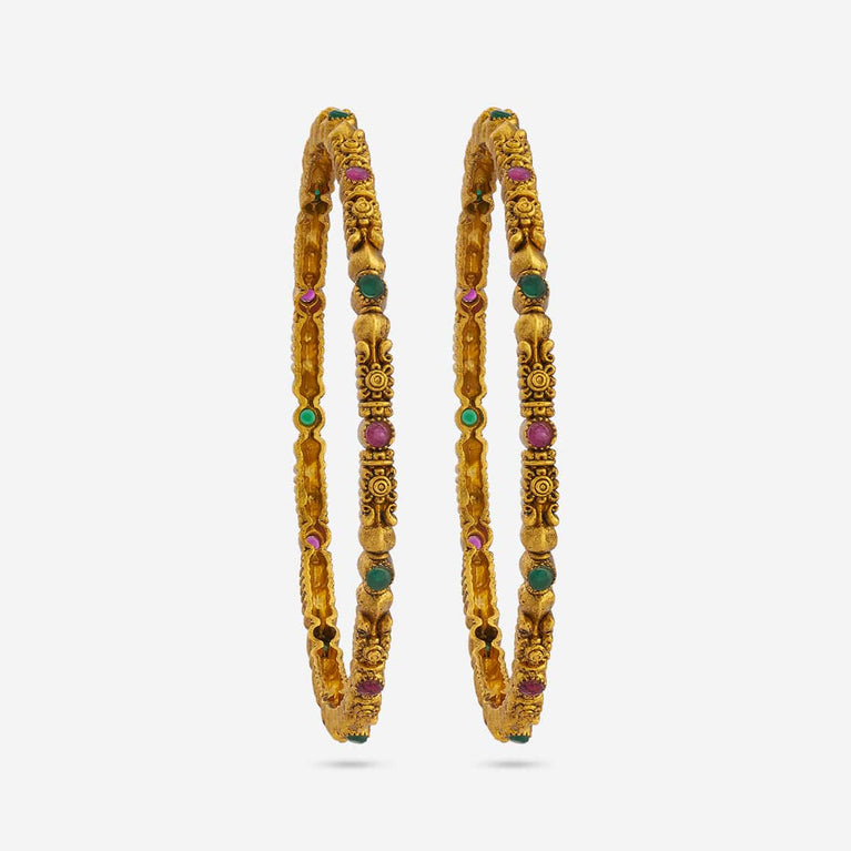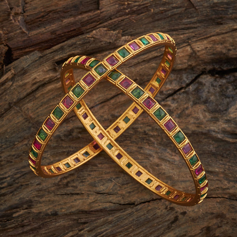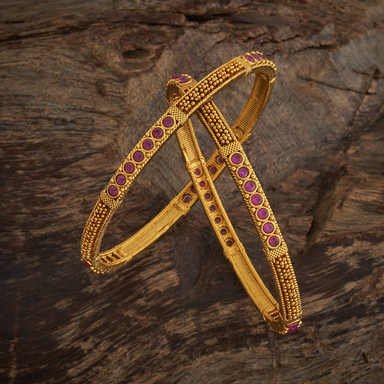 Kushal's Fashion Jewellery Antique BangleGet ready to fall in love with the minimalistic and eye-catching work details of our latest antique bangles this festive season. These bangles are adorned with gold polish and studded with shining ruby stones to complete your outfit in the best way possible. These bangles blend well with all occasions and outfits to make you the trendsetter.
