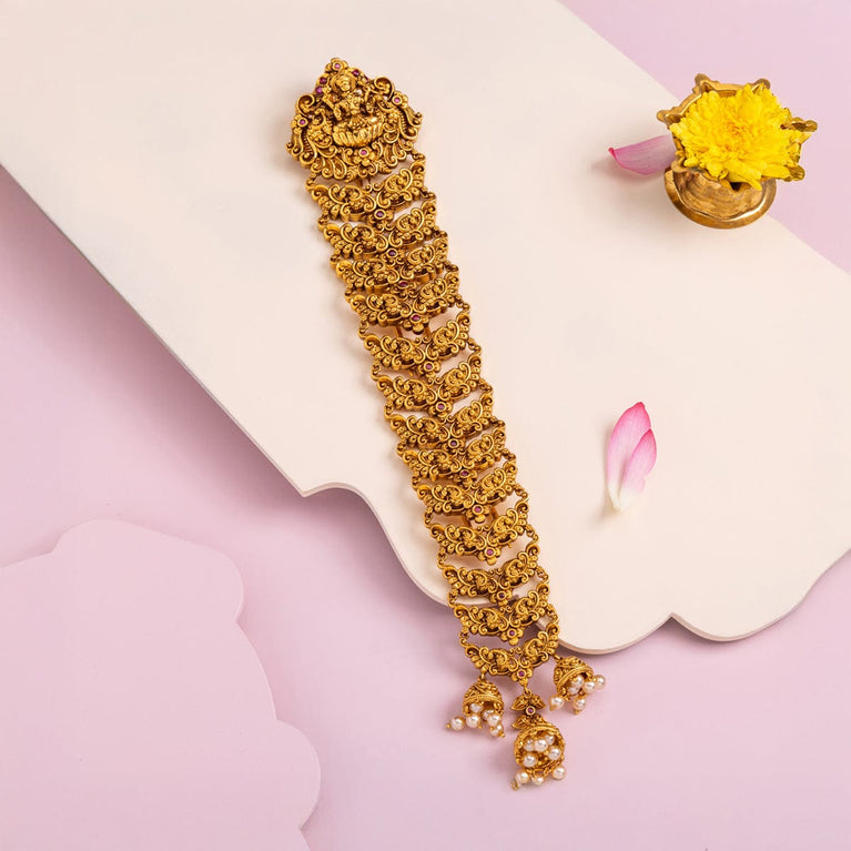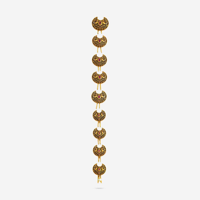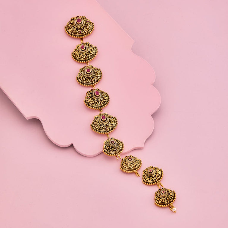 Kushal's Ruby Antique EarringFor a truly eye-catching accessory, try our antique ruby stud earring! Handcrafted with precision using synthetic stones and beads, this piece boasts a beautiful flower-like appearance. Its unique design and gorgeous ruby colour make it perfect for any occasion.