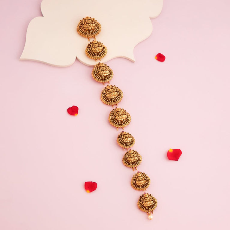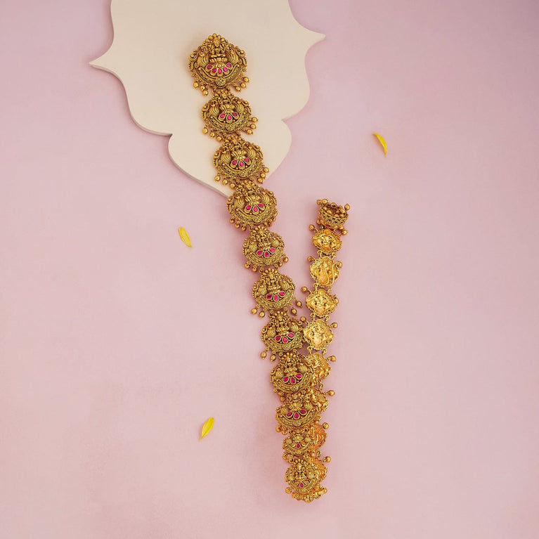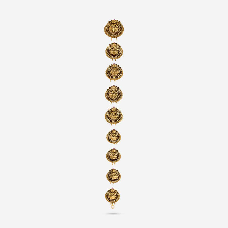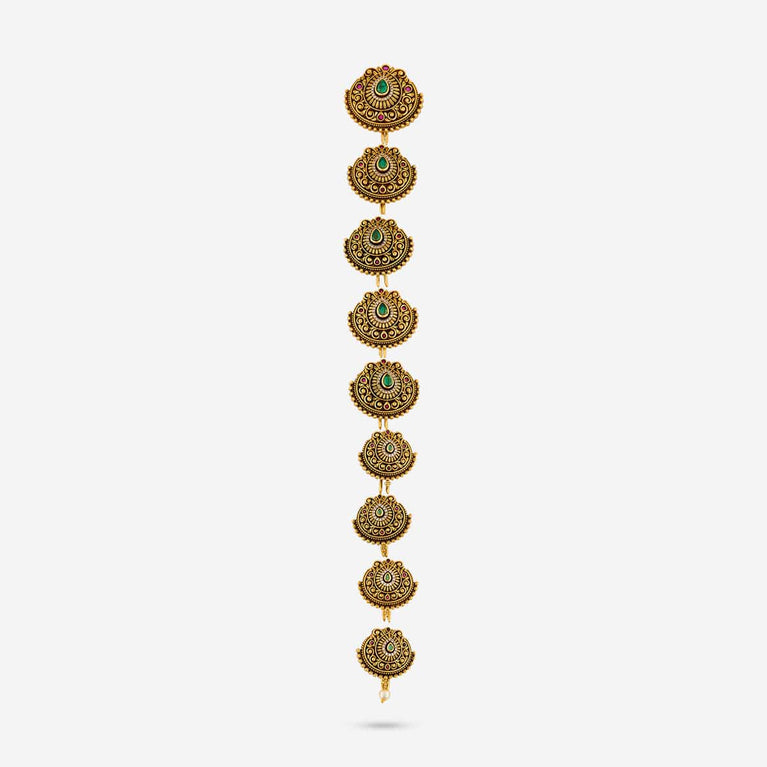 Flower Motif Antique EarringRock a chic vibe with these antique earrings, crafted from copper alloy with a golden polish. Studded with green or ruby stones in a trendy floral design, they're the ultimate statement-making jewellery. These perfect push-back earrings are ideal for any occasion, seamlessly blending with your fusion outfits for that Gen Z flair.