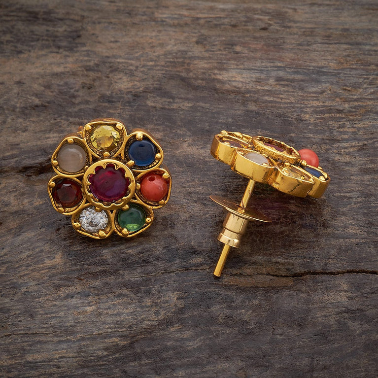 Kushal's Navaratna, Green, Ruby And Ruby-Green Casual Wear Stud Earring Emballished with stones Add stunning elements and accessories to your subtle, daily looks and enhance their grace. These navaratna, ruby, green and ruby-green copper alloy Antique Earring from our collection are perfect to amplify all your looks and enhance their smartness. Get your hands on this top-selling jewelry item and be ready to rock any monochrome or neutral look. Flaunt them and notice all heads turning at you!
