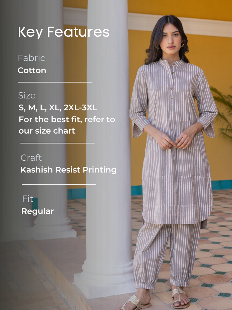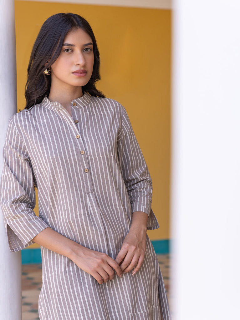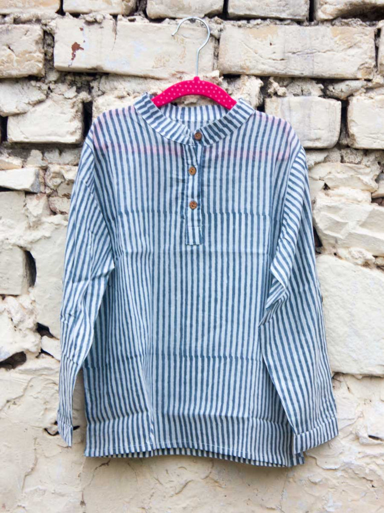 Indigo Stripes Organic Cotton Shirt Kurta with Roll Up Sleeves