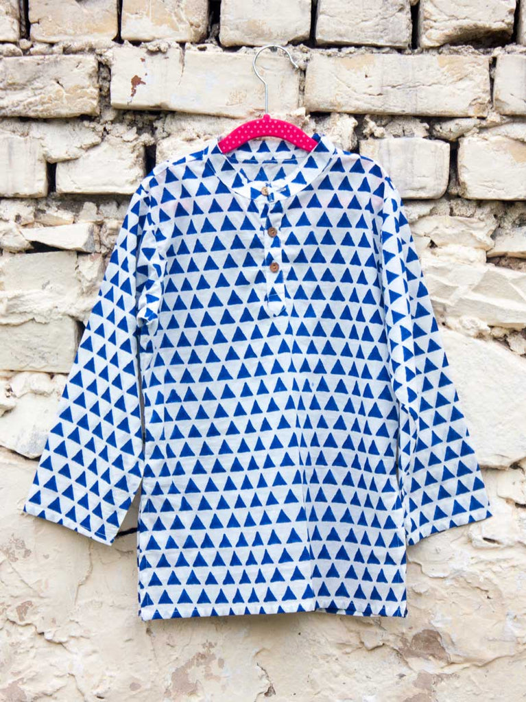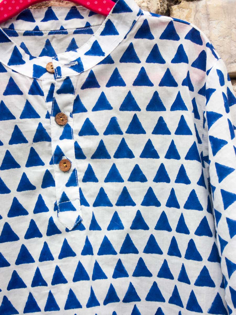 Dino Organic Cotton Shirt Kurta with Roll Up Sleeves