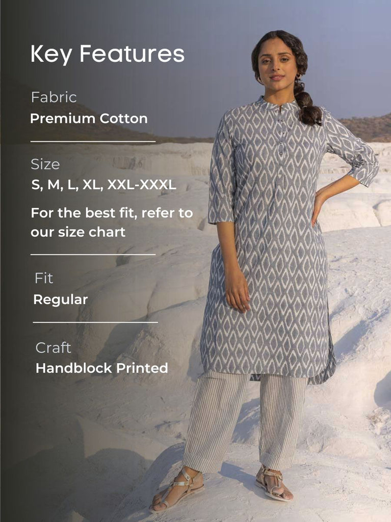Evergreen Grey Organic Cotton Shirt Kurta with Roll Up Sleeves