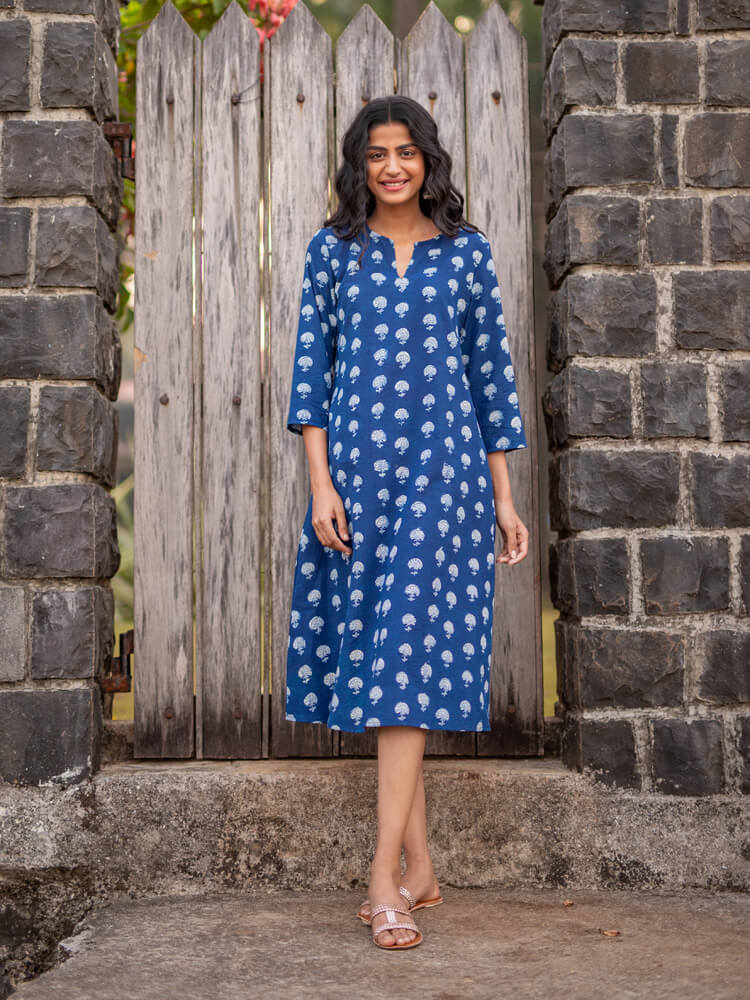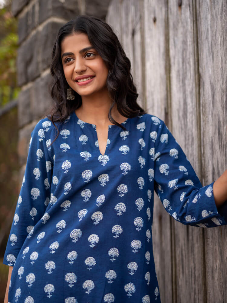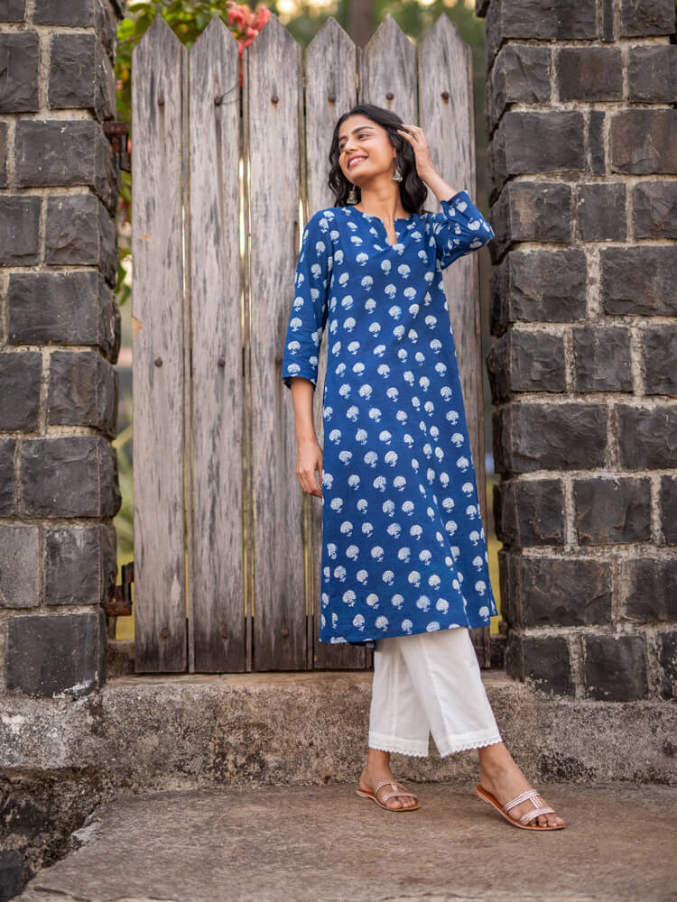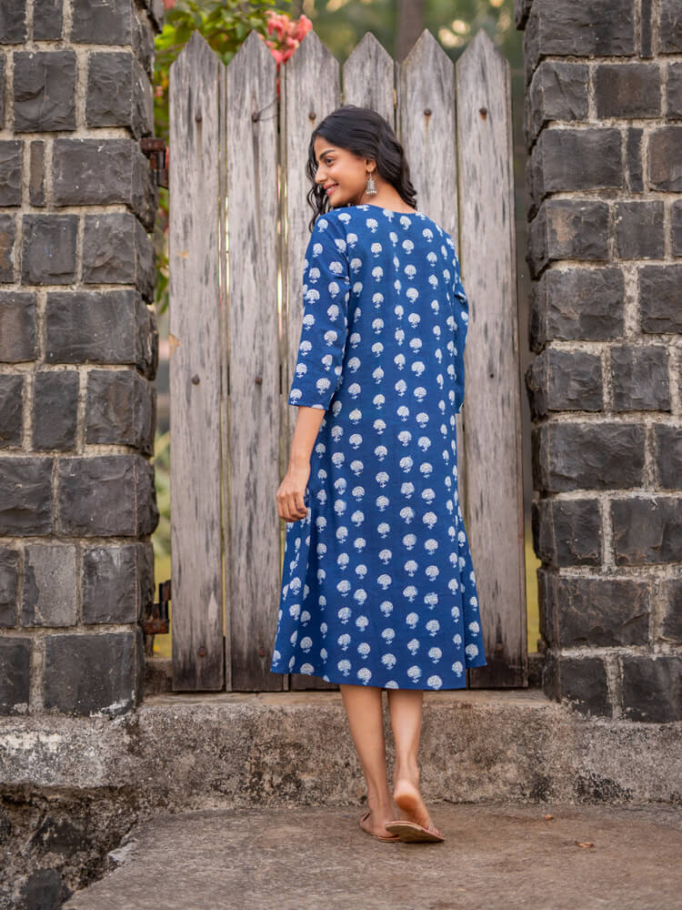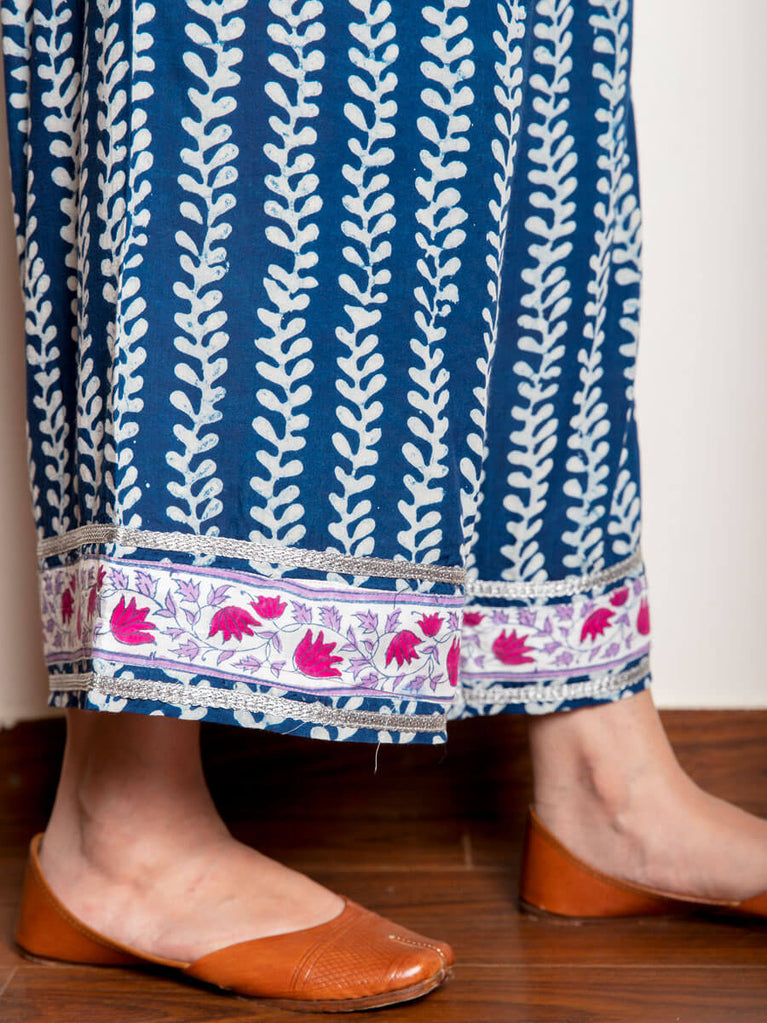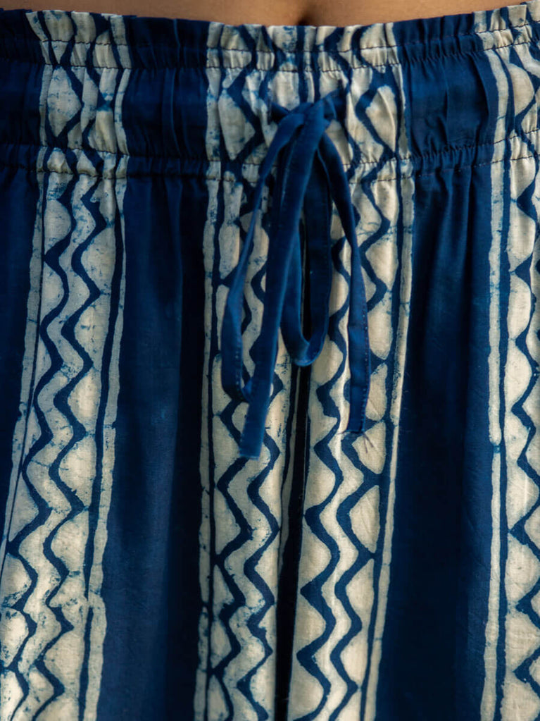 Ocean Wave Chevron Block Print Cotton Lehanga Set of 4