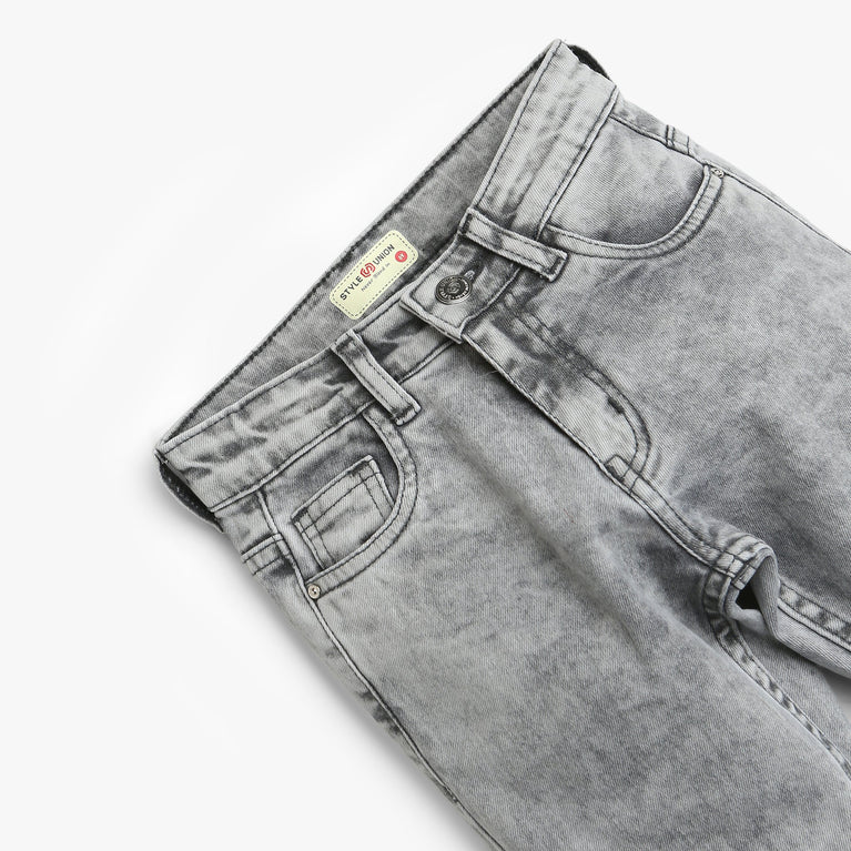 Boys Slim Fit Casual Denim With Crackel Effect