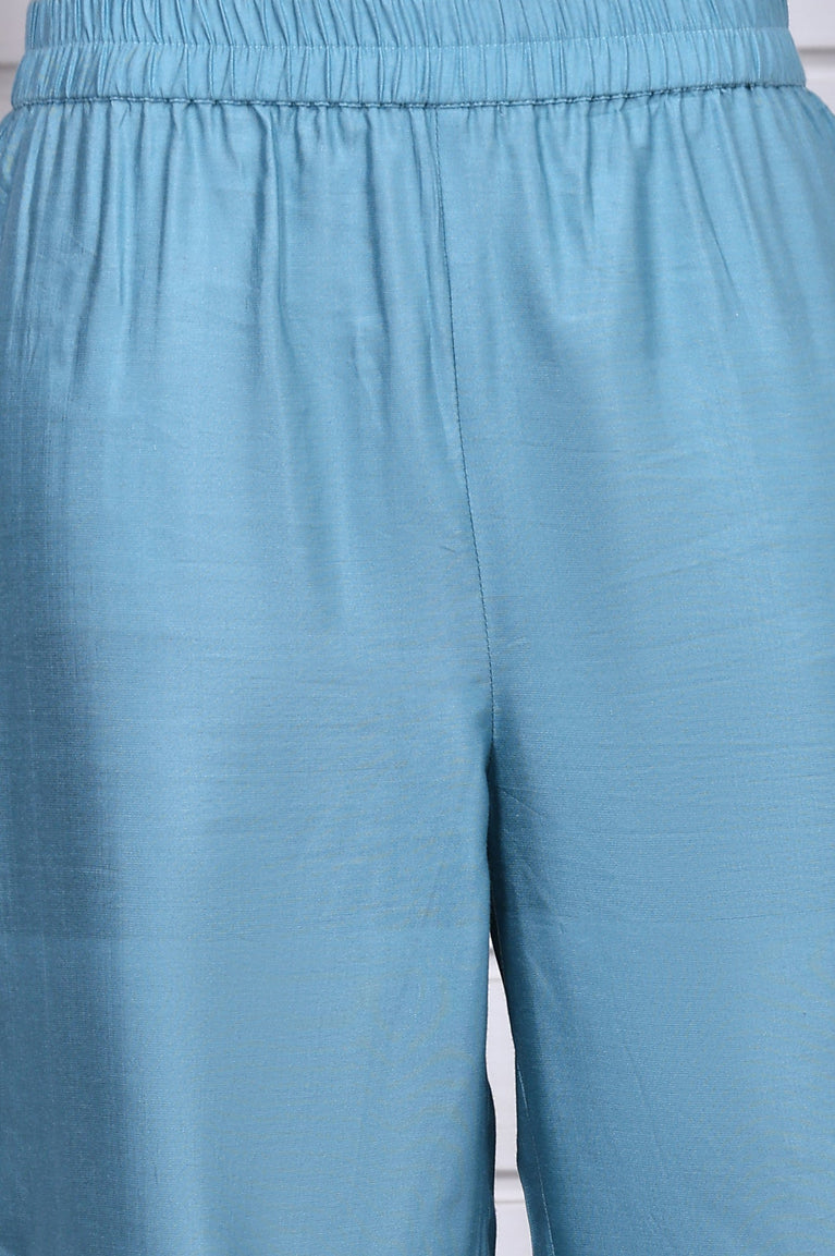 Blue Asymmetrical Embroidered Kurta and Palazzo Set