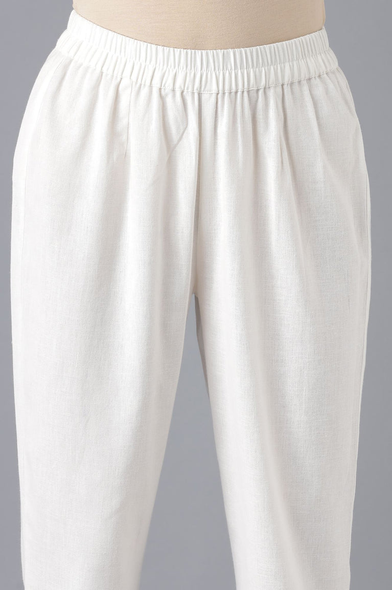 For yoru casual look get this pretty kurta set by Aurelia. The set has yarn dyed dobby kurta, which is an exquisite garment that is perfect for those who value comfort and style. The mandarin collar with V-neckline create an elegant and sophisticated look, while the full mock placket and contrast buttons with lace insert add a unique and captivating element to the design. It is paired with white cotton flax pintuck trouser pants.