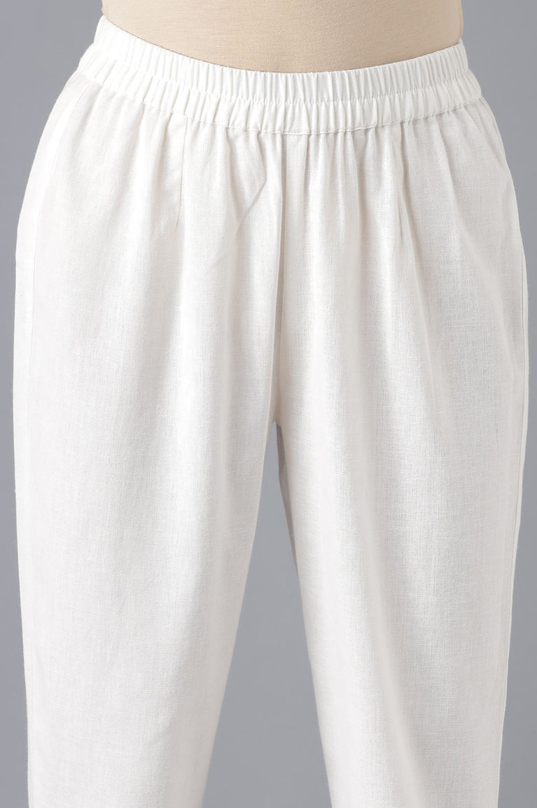 Prep Yourself For A Gathering In This Elegant And Stylish 3 Piece Ethnic Set. The Set Includes Yarn-Dyed A-Line Kurta Embellished With Bead Work And Mid-Rise Ankle Length Trousers With Banaras Dupatta.