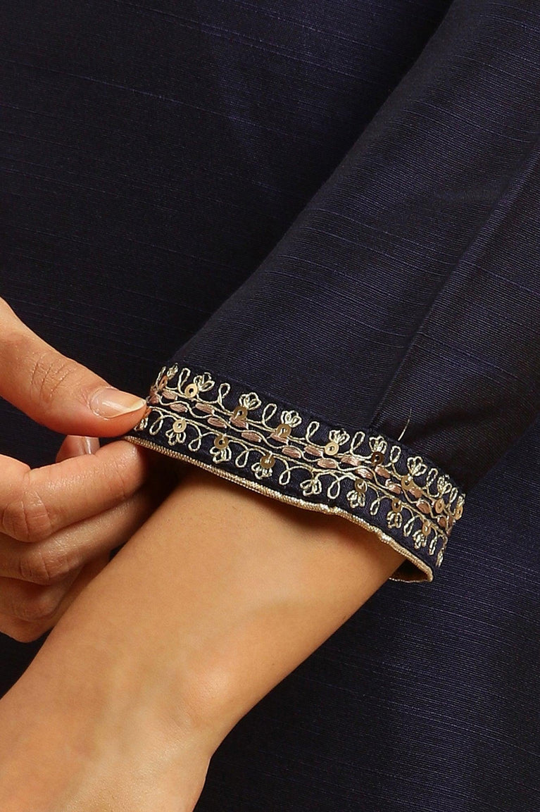 Blue Zari Embroidered Straight Kurta and Leggings Set
