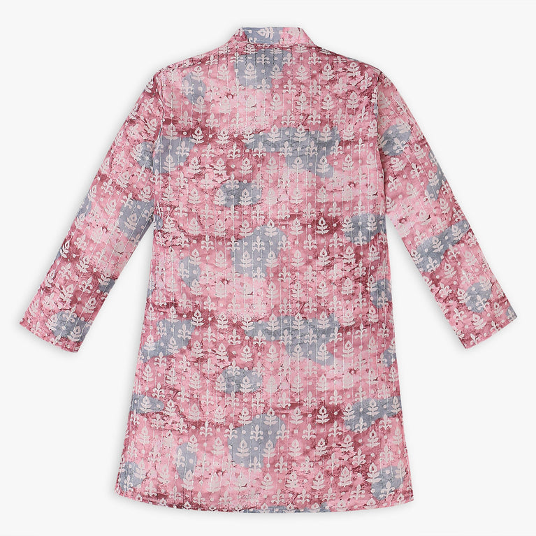 These printed pattern kurta with pant set has mandarin collar and full sleeve. Made from polyester, your kid's feel comfortable wearing the product.