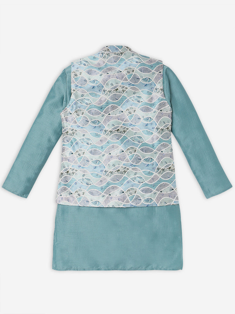 Boy's Regular Fit Embellished Kurta With Pant Set