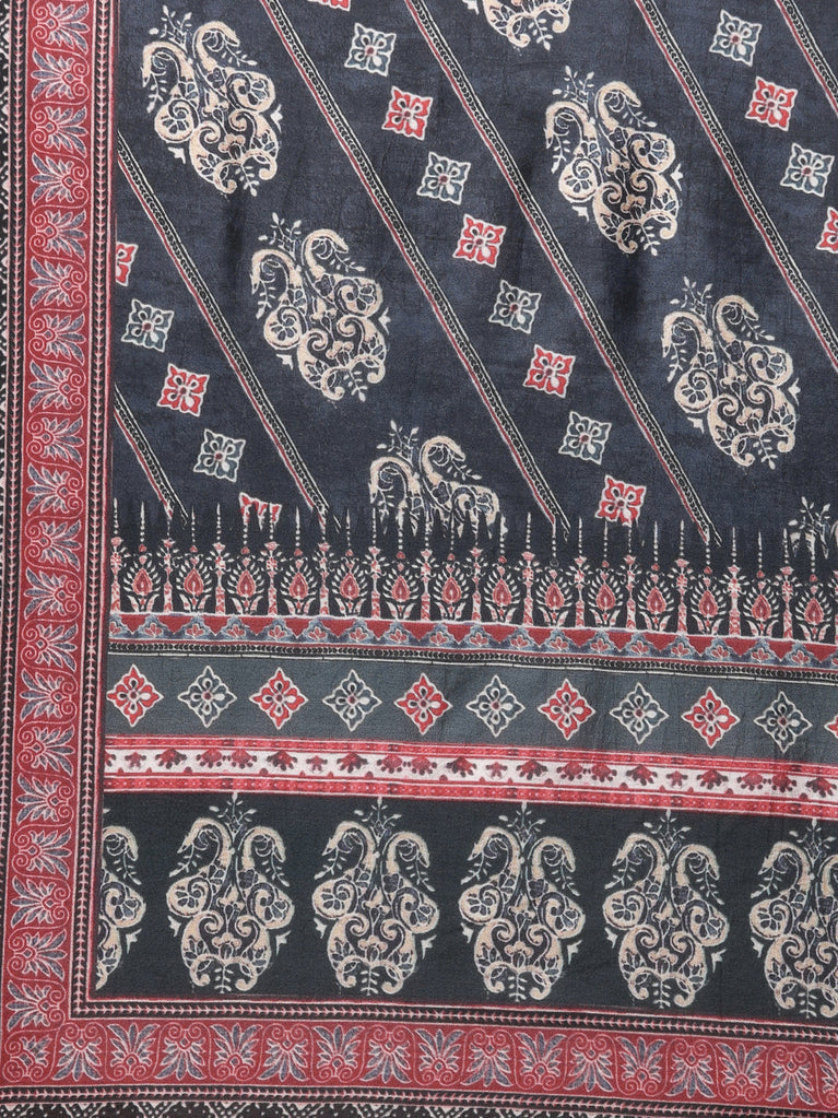 Neeru's Black Color Rayon Fabric Printed Kurta And Trouser