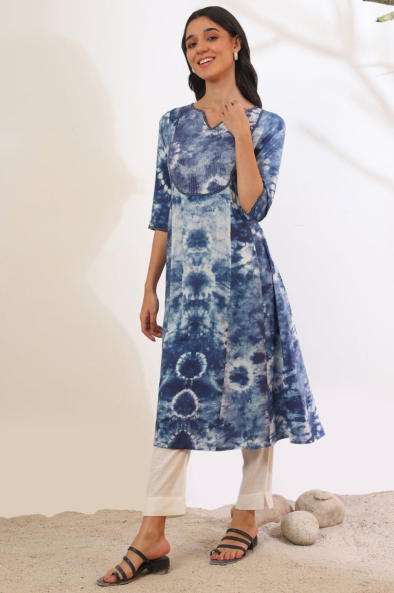 Blue Shibori Printed A-Line Pure Cotton Kurta