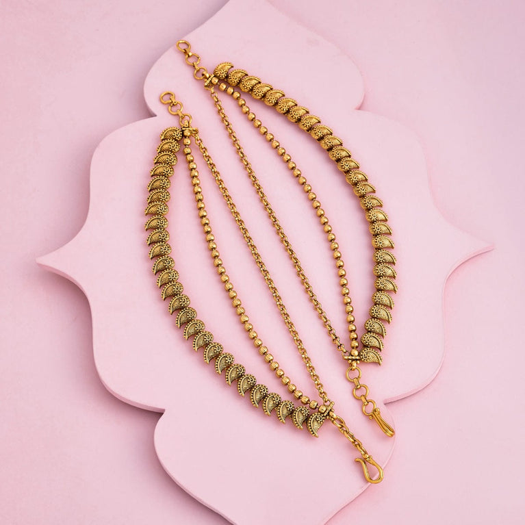 Kushal's Fashion Jewellery Festive Paisley-Manga Antique NecklaceWe present you with Kushal's Fashion Jewellery most beautiful antique necklace. This beautiful necklace is pure art, crafted with great attention to detail. You will look like a diva when you pair this antique necklace with your gorgeous outfit. Get your hands on this beautiful jewellery before it's out of stock!