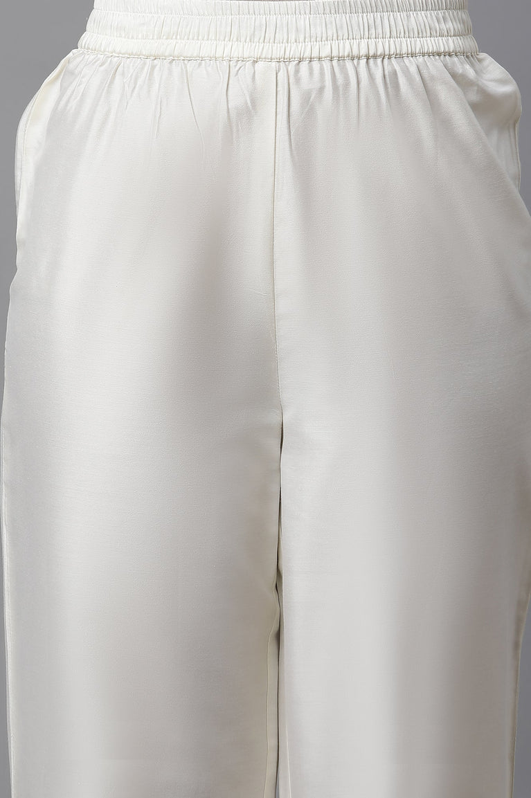 A straight printed kurta which is Tailored to give straight fit and has round neckline. It is paired with calf length culottes in mid-rise and elasticated waistband.