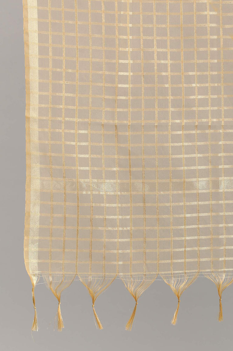Prep Yourself For A Gathering In This Elegant And Stylish 3 Piece Ethnic Set. The Set Includes Yarn-Dyed A-Line Kurta Embellished With Bead Work And Mid-Rise Ankle Length Trousers With Banaras Dupatta.