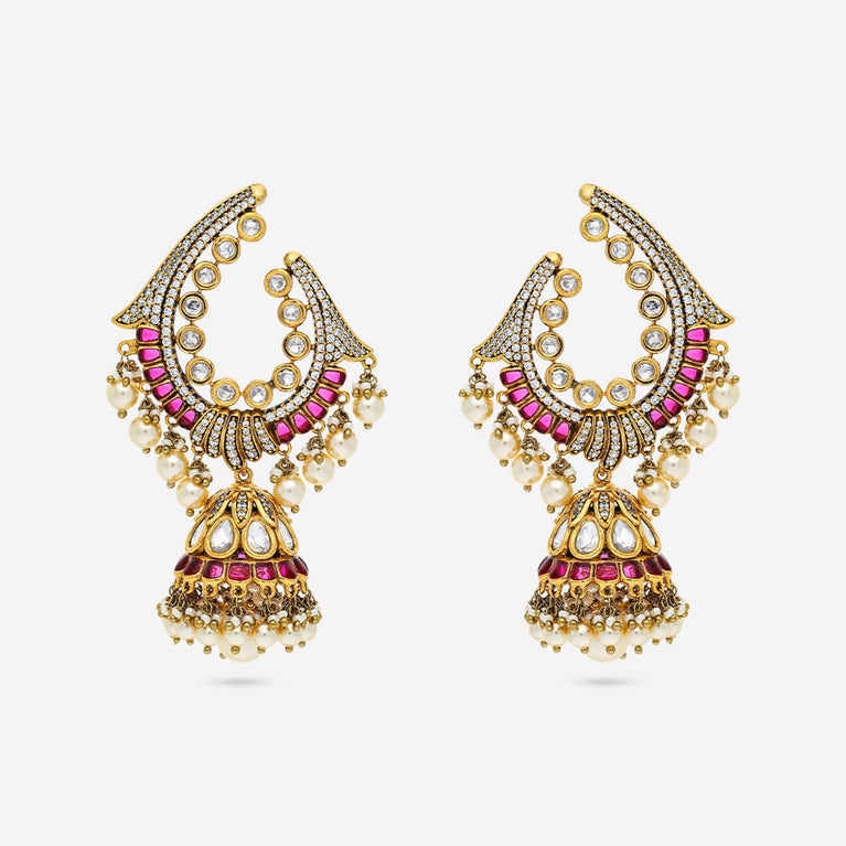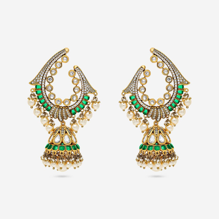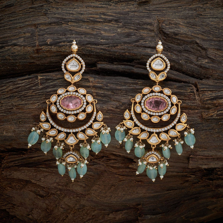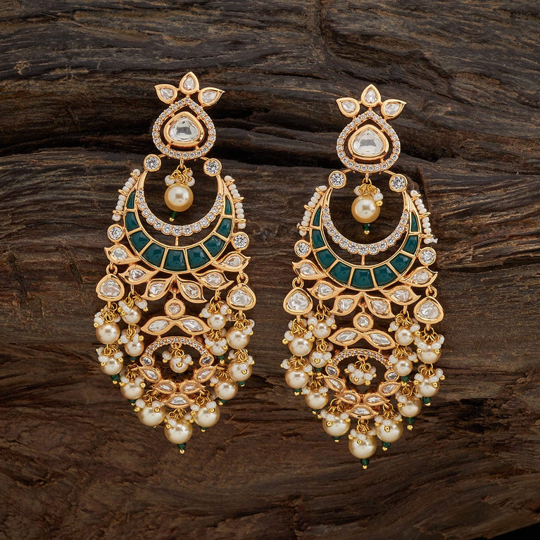 Kushal's Fashion Jewellery Paisley Design Kundan EarringAll types of polishes look splendid on Kundan stones, but Victorian polish gives it the finest look and our latest pair of Kundan earrings are here to give you that look. The Victorian polish on the Kundan stones paired with the green and ruby stones makes these hanging earrings one of the best accessories you can get this wedding season.