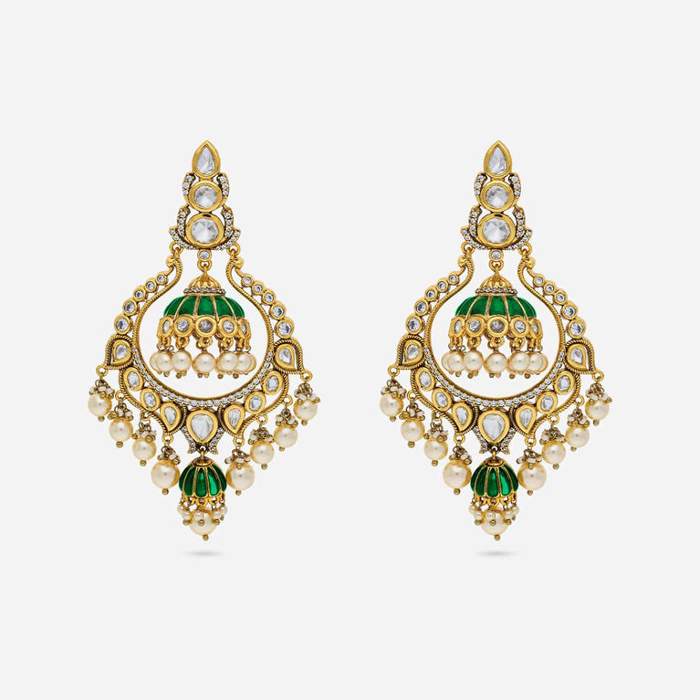 Kushal's Fashion Jewellery Oval Pattern Kundan EarringMake a statement on any occasion with our magnificent Kundan Earrings. These earrings are made with a copper alloy base metal and showcase a perfect blend of elegance and craftsmanship. With their stunning design and wide range of color options, these earrings from Kushal's guarantee to take your style to the next level and make you the center of attention.