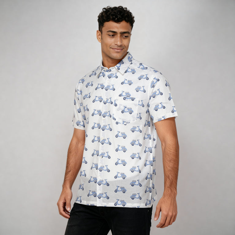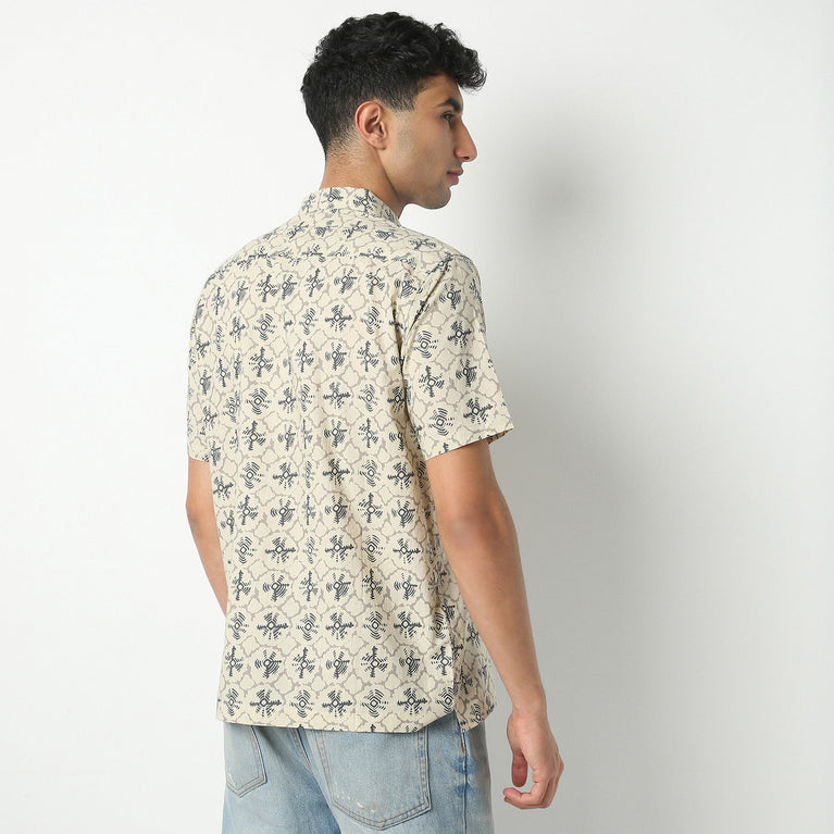 Camp Collar Half Sleeve Short Length Relaxed Fit Cuban Printed Shirt