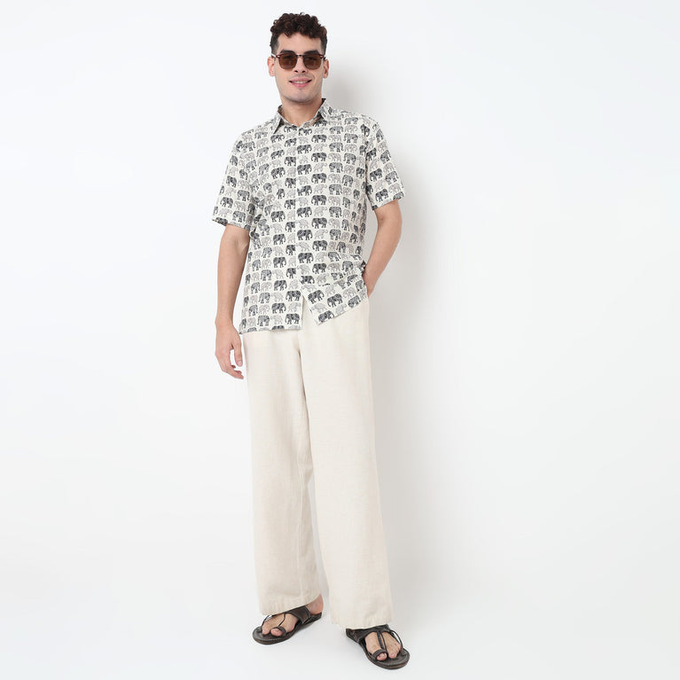 Camp Collar Half Sleeve Relaxed Fit Cuban Printed Shirt