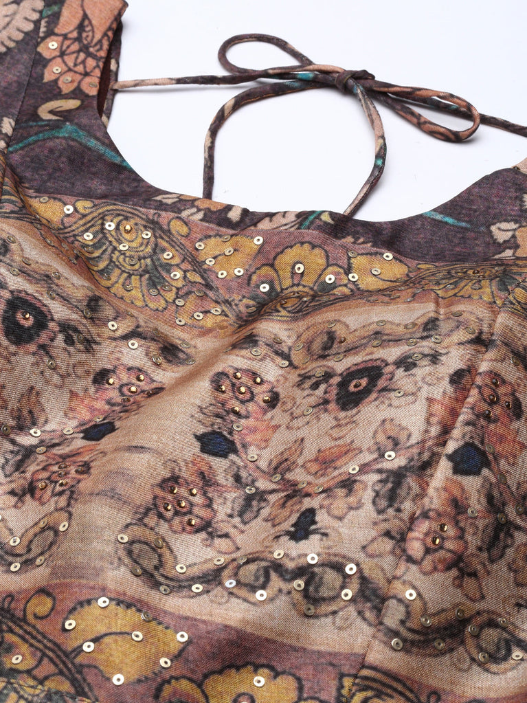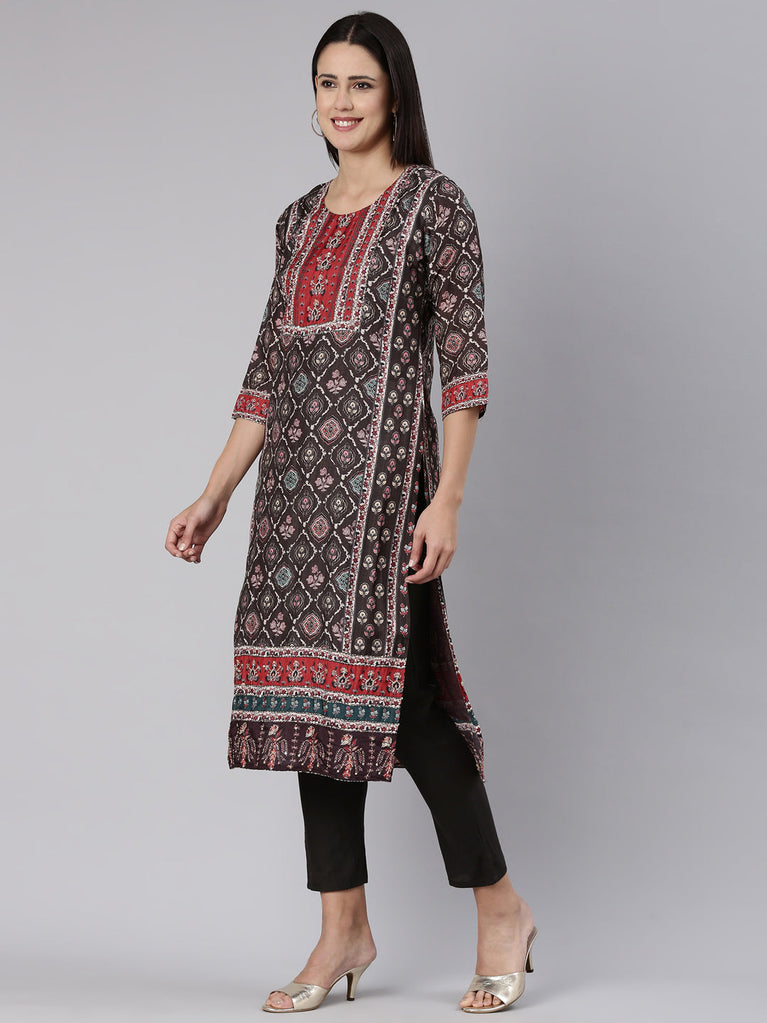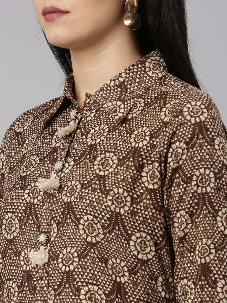 Neeru's Brown Regular, Straight-Cut Printed Readymade suits - A Sophisticated Combination Of Elegance And Style.