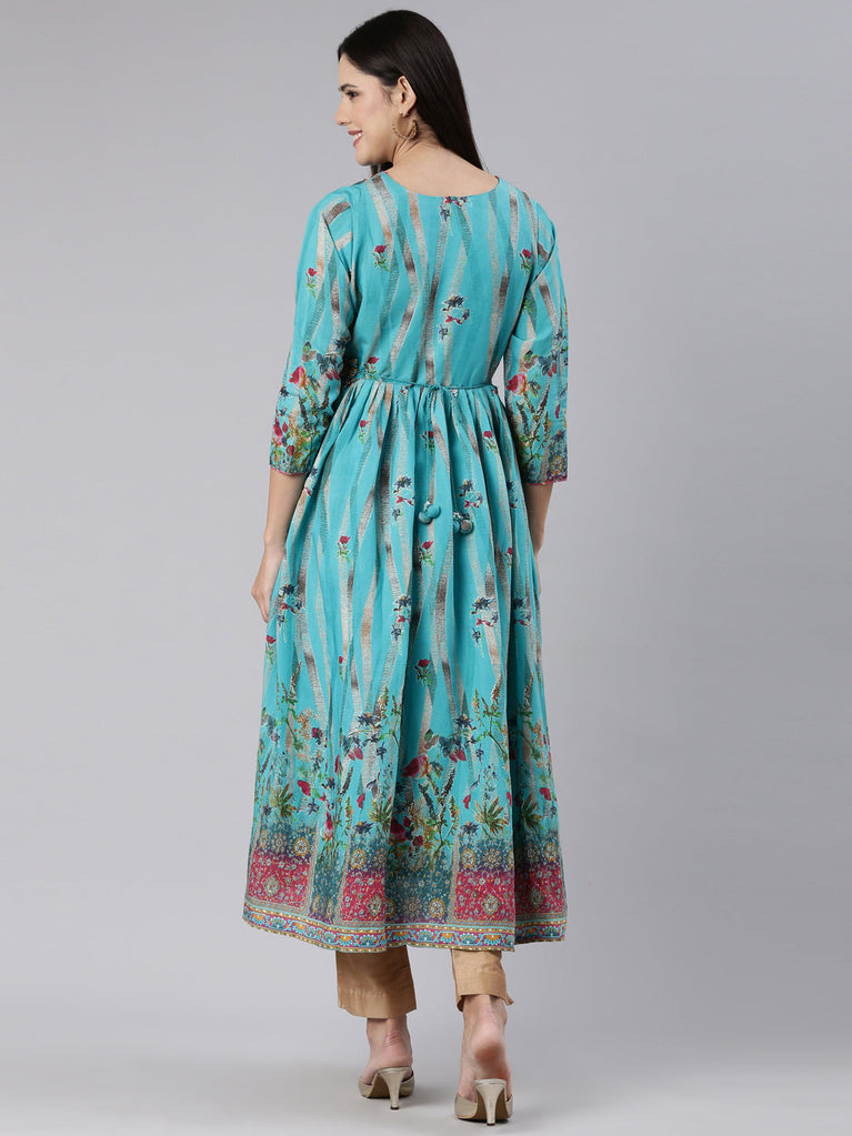 Neeru's Blue Regular Straight Yoke Design Readymade suits