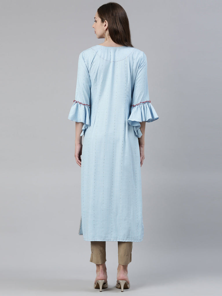 Neeru's Blue Straight Regular Viscose Rayon Kurtas