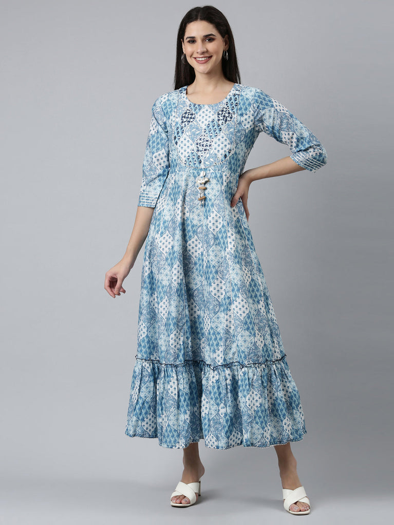 Introducing Neeru's Blue Straight Casual Printed Dress, A Luxurious Garment That Is Sure To Make A Statement. Featuring A Classic Silhouette And Unique Printed Pattern, This Gorgeous Dress Exudes Elegance And Sophistication. Whether You Pair It With Simple Jewellery Or Vivid Accessories, You'Ll Be Sure To Turn Heads With This One-Of-A-Kind Piece.