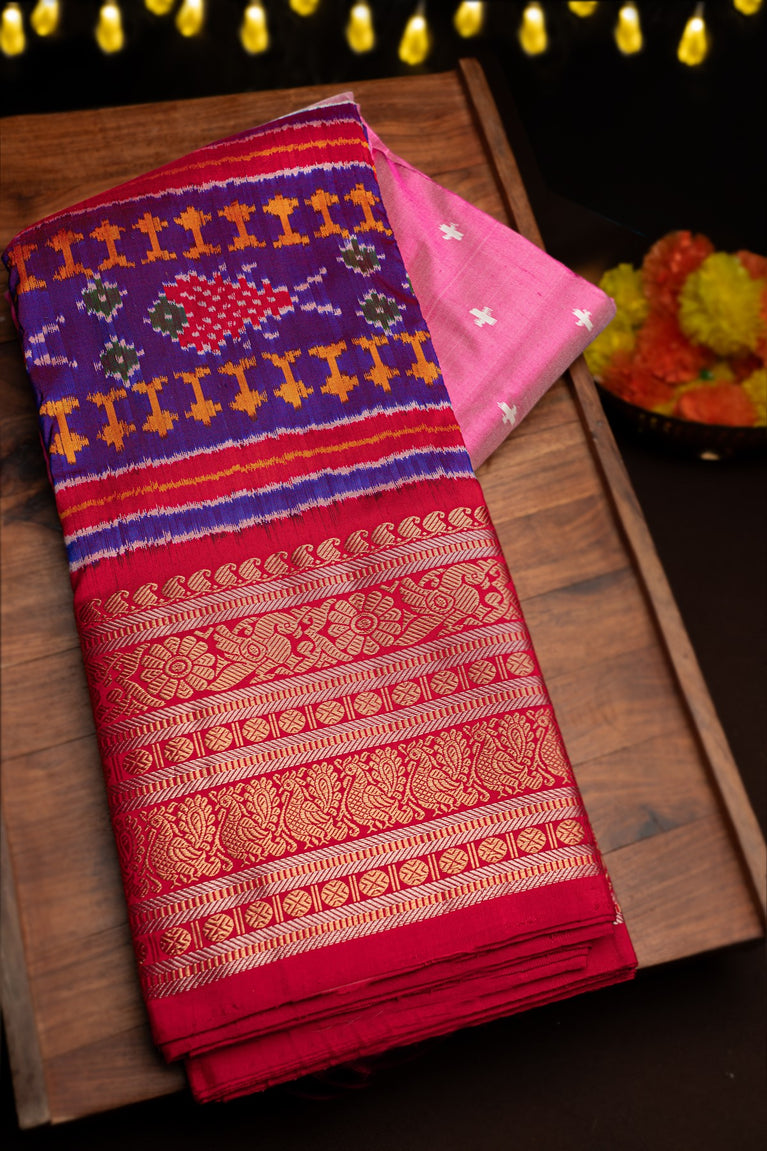 Mandir Blue & Pink Kanchi Ikat Ikat Saree