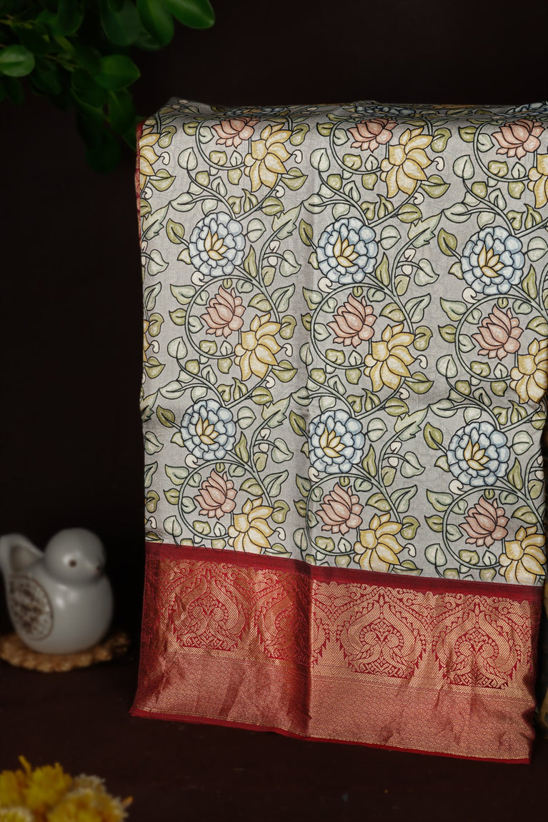 Mandir Light Grey & Maroon Fancy Digital Print Saree