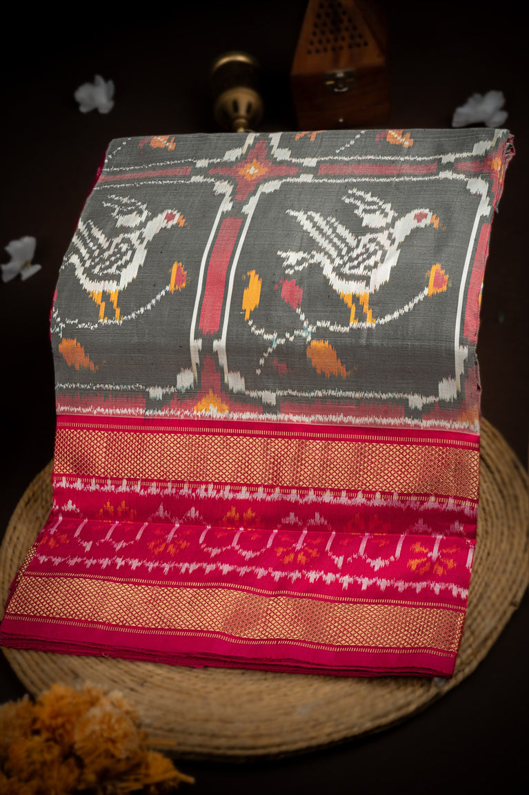 Mandir Light Grey & Pink Kanchi Ikat Motifs Saree